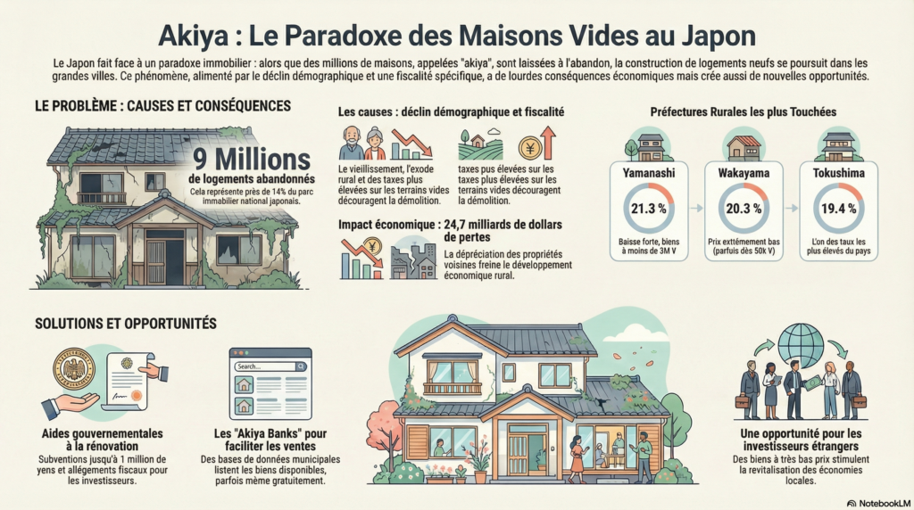 Ce phénomène porte un nom : les “akiya”, ou “maisons vides”. Loin d’être un simple fait divers, il révèle les profondes mutations démographiques, fiscales et culturelles qui traversent le pays. Cet article se propose de décrypter ce paradoxe immobilier en cinq révélations surprenantes qui bousculent les idées reçues sur le marché du logement japonais.